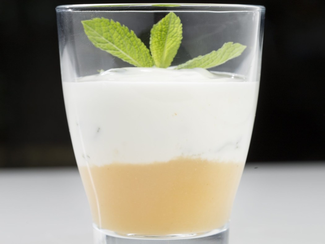 - Servirlo muy frío, combinando capas de compota de manzana con capas de yogur.