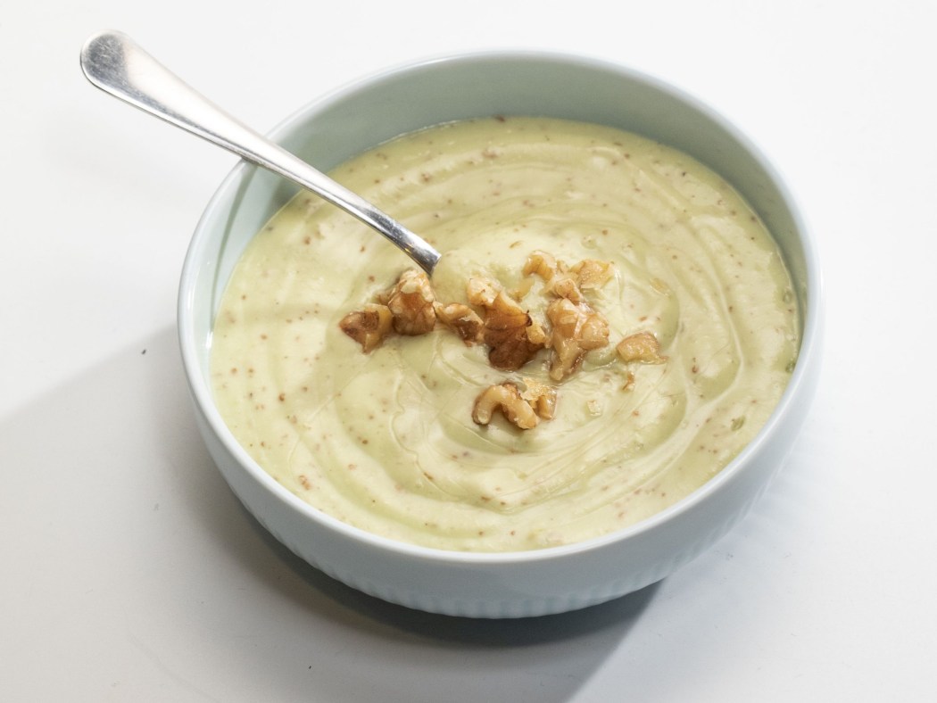 - Añadir más leche, si se desea menos espeso. Decorar con unas nueces y servir.