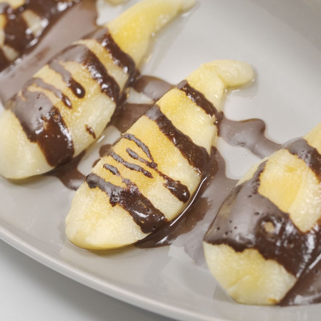 Postre: Pera al microondas con salsa de cacao