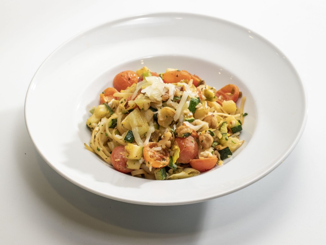 - Poner un chorrito de agua de la cocción y remover el conjunto fuera del fuego hasta que el queso se funda y quede bien ligado. Emplatar y servir.