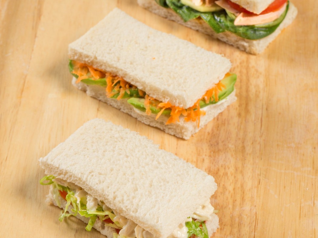 Untar el queso por una cara de las dos rebanadas de pan de molde y disponer encima la zanahoria y el aguacate.